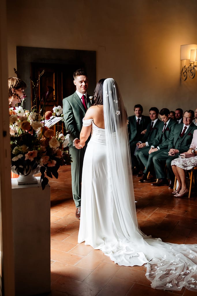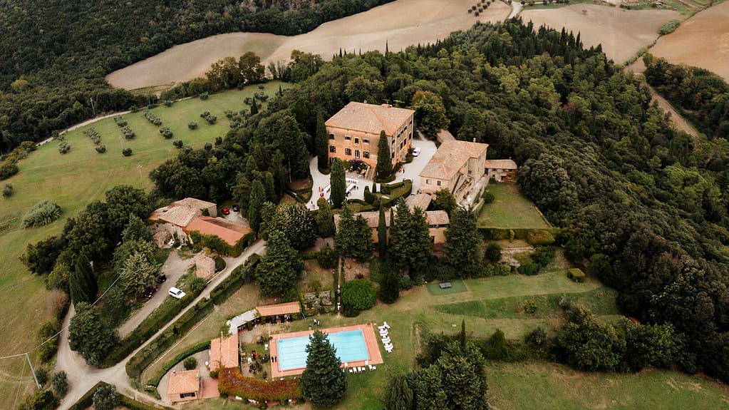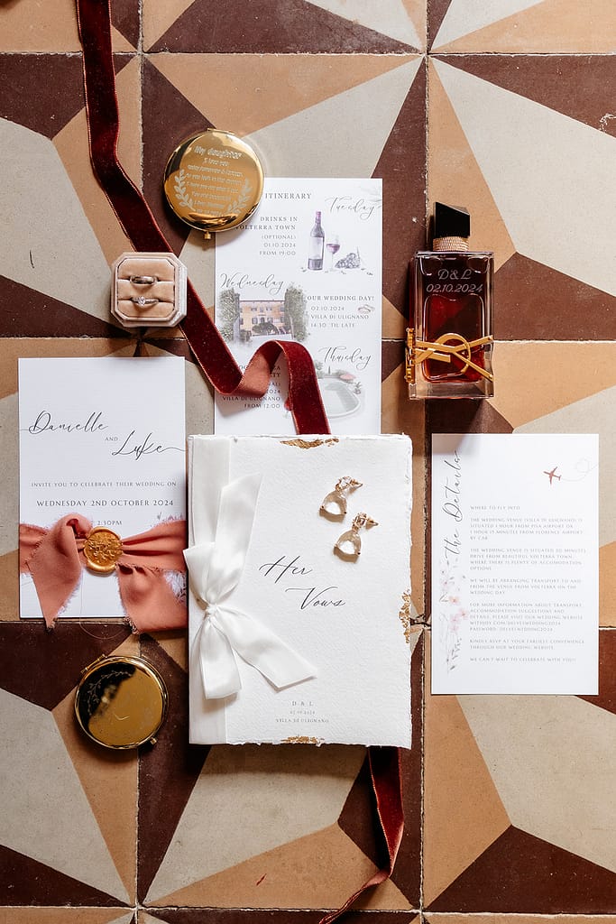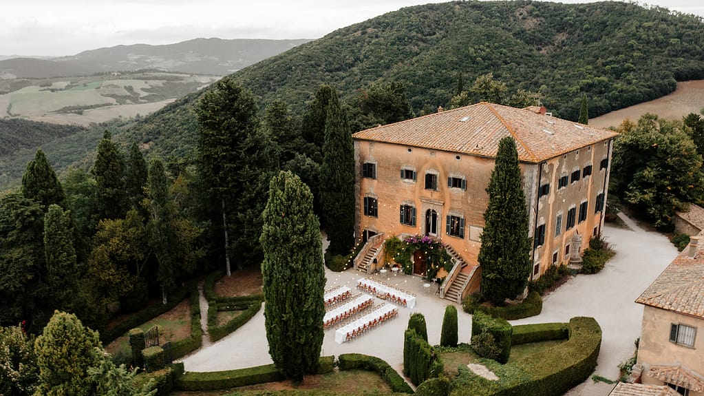 Villa di Ulignano, perched in the Tuscan countryside, provided a dreamlike setting for Danielle and Luke’s celebration. Surrounded by olive trees, terracotta tones, and distant vineyards, the villa offered not only beauty but soul, a place with real atmosphere and character.