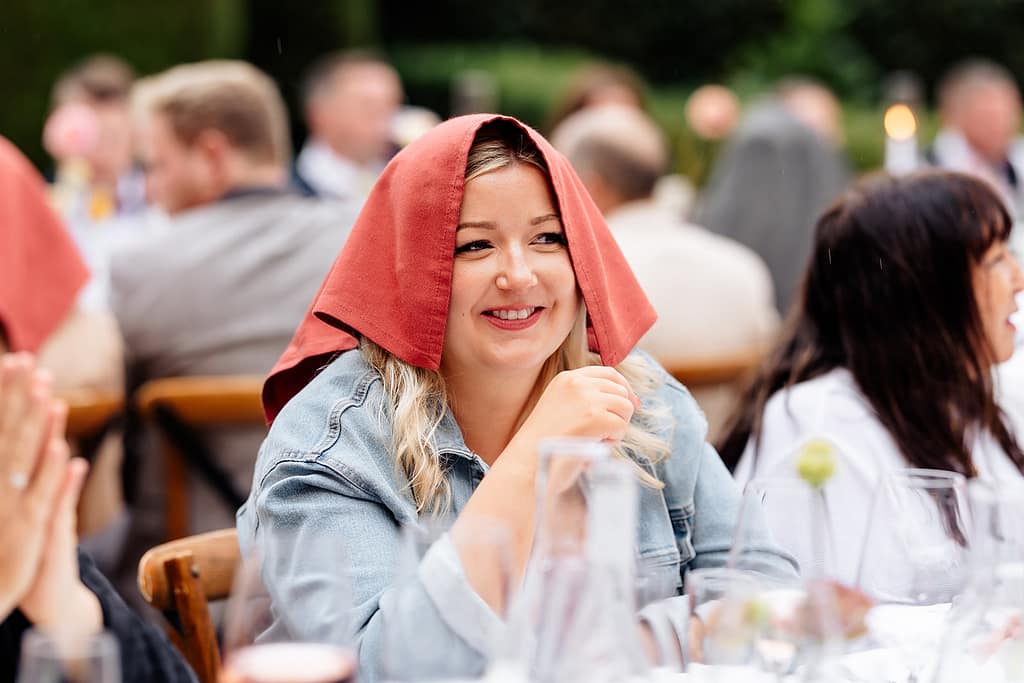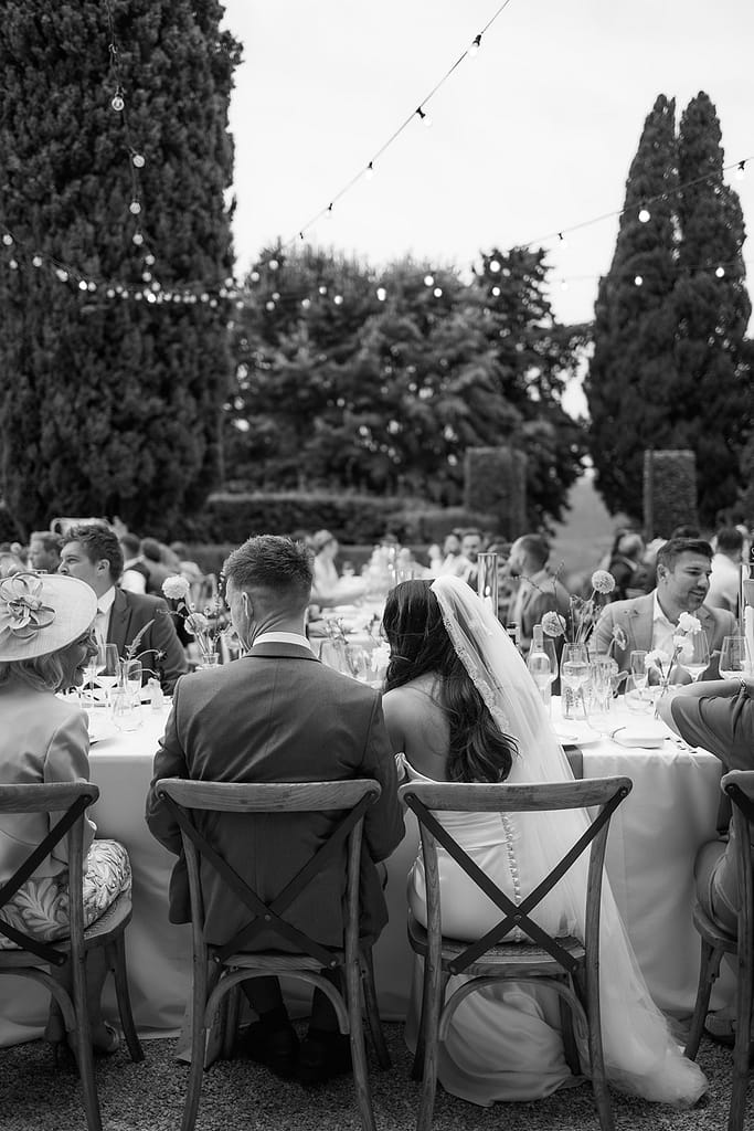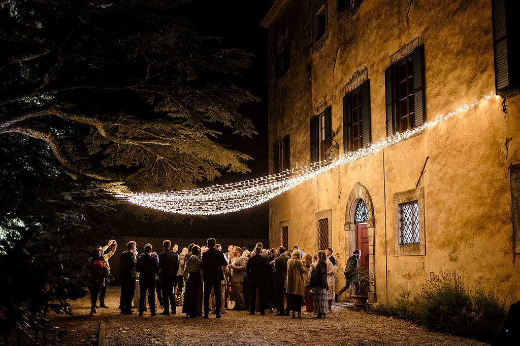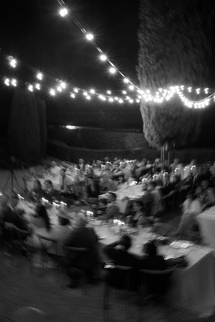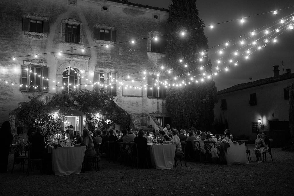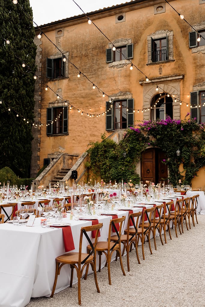 Dinner was served outside, long tables stretching across the front of the villa, framed by the Tuscan landscape. And then…it rained.