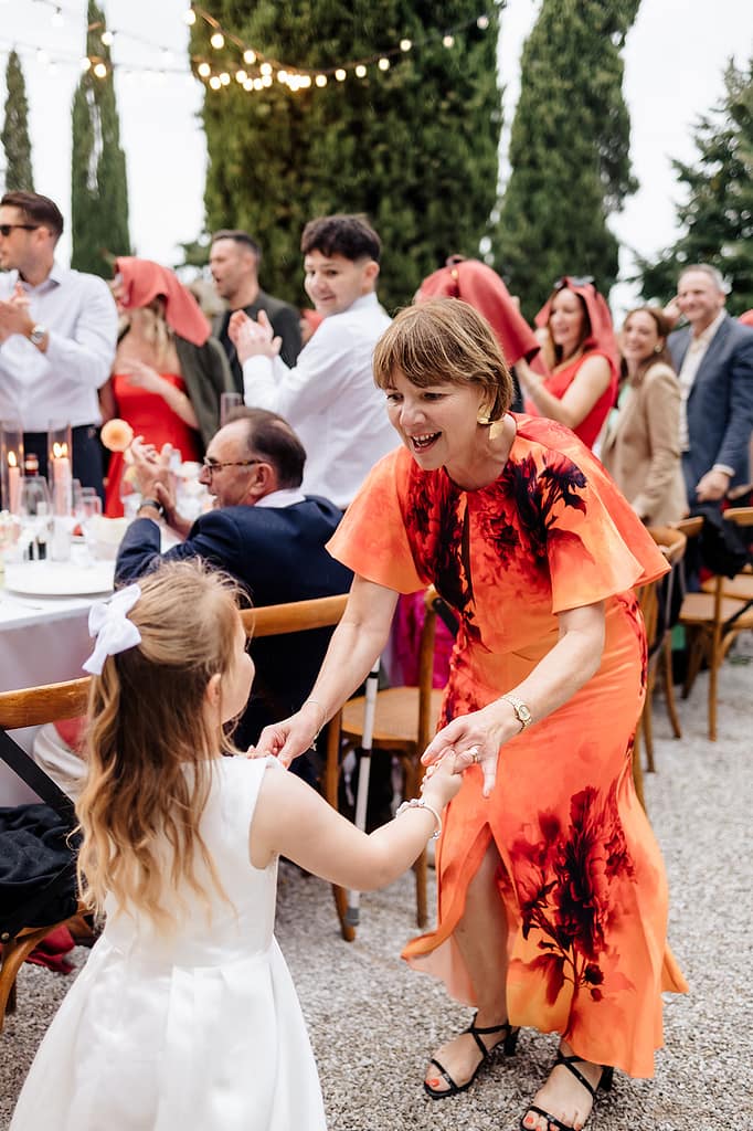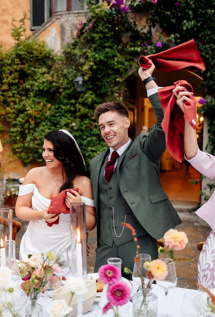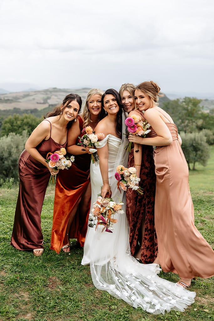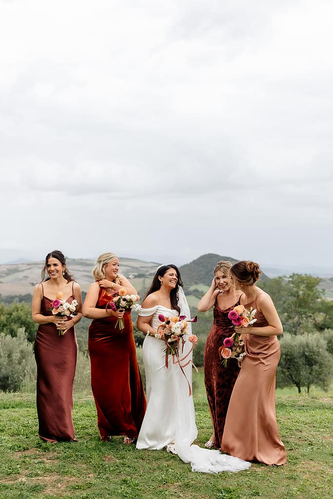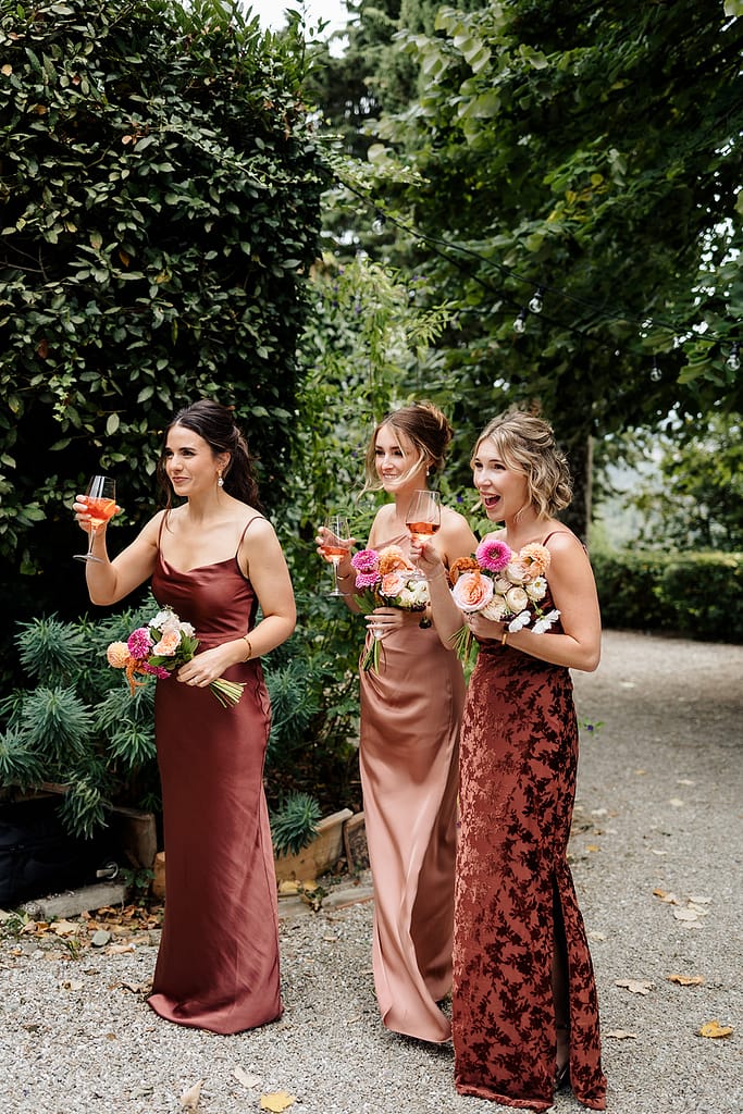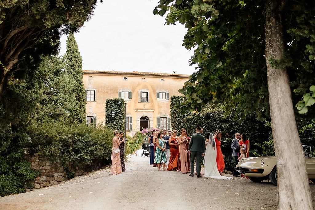 The floral design echoed the landscape: soft peach, auburn, orange, and green tones that melted into the venue’s natural aesthetic. It was Tuscany in colour form, warm, romantic, and alive.