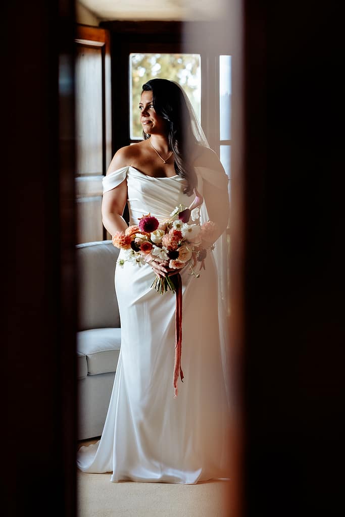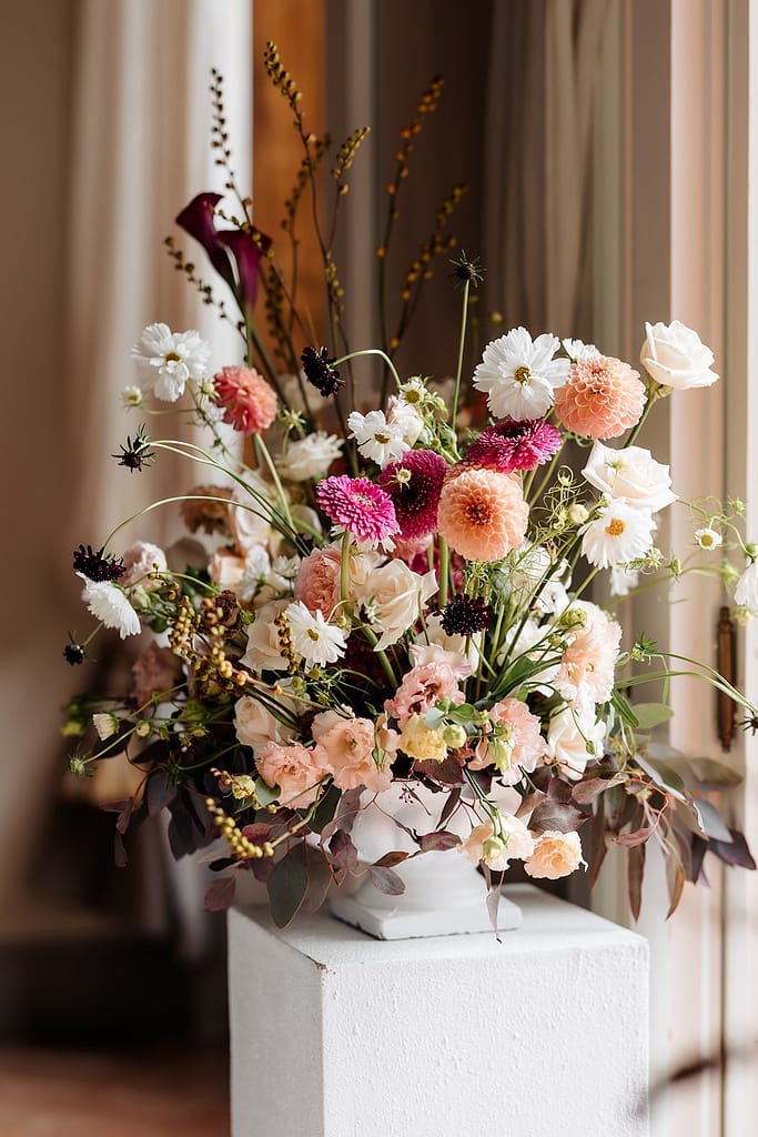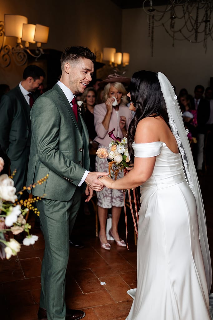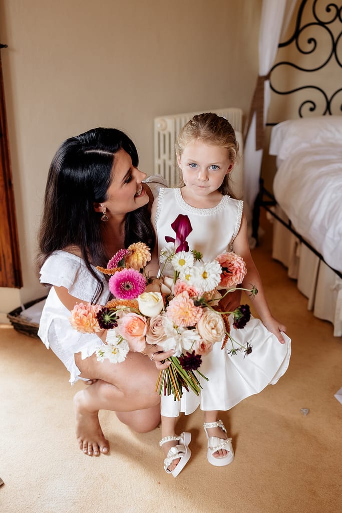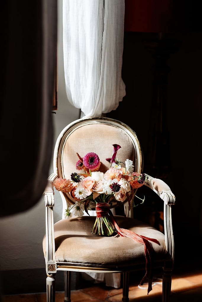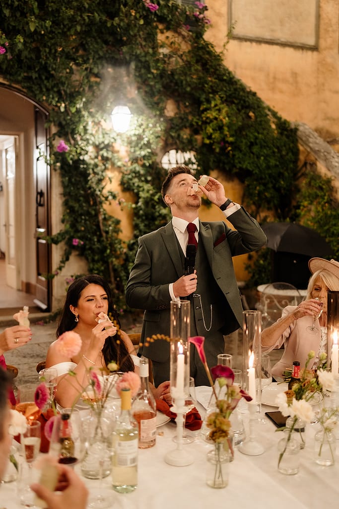 The floral design echoed the landscape: soft peach, auburn, orange, and green tones that melted into the venue’s natural aesthetic. It was Tuscany in colour form, warm, romantic, and alive.