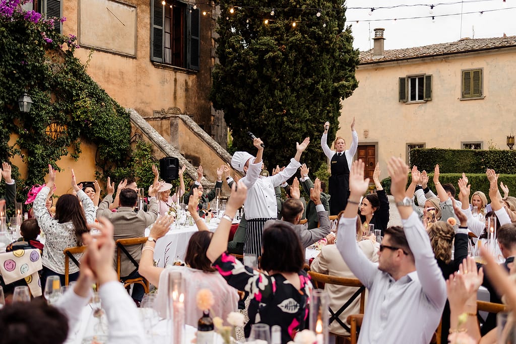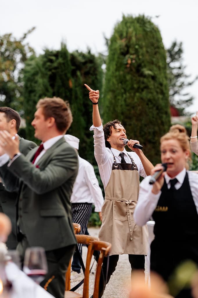 But rather than interrupt the moment, it made the evening unforgettable. Guests threw napkins over their heads, the surprise singing waiters broke into ABBA, and soon everyone was on their feet, drenched in laughter (and a little rain), singing into the night. It was the kind of scene you couldn’t stage if you tried – pure, cinematic joy.