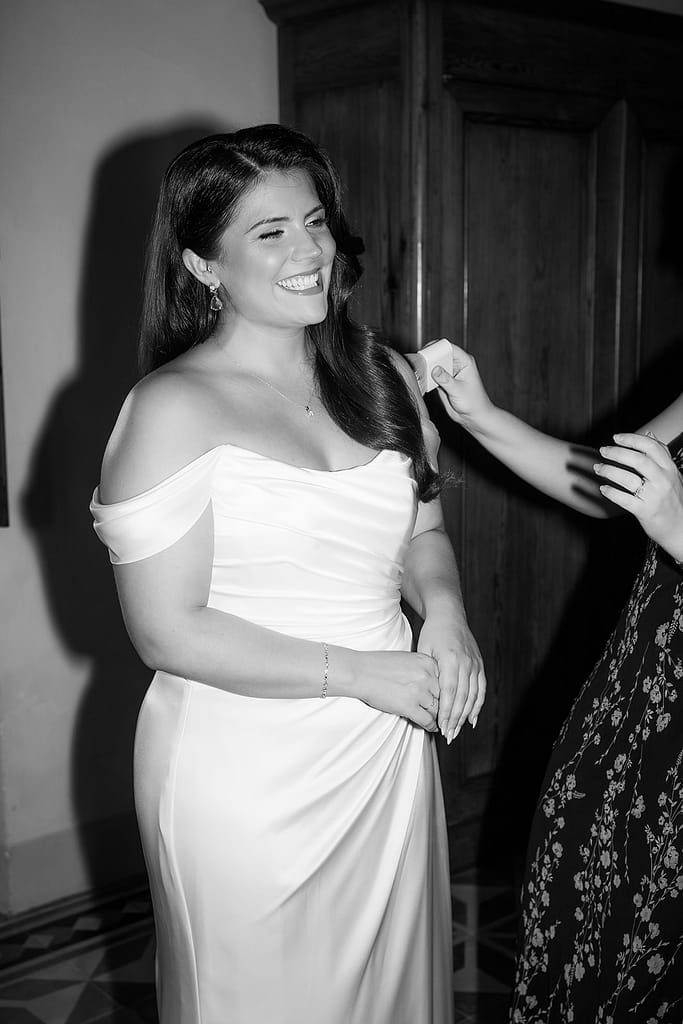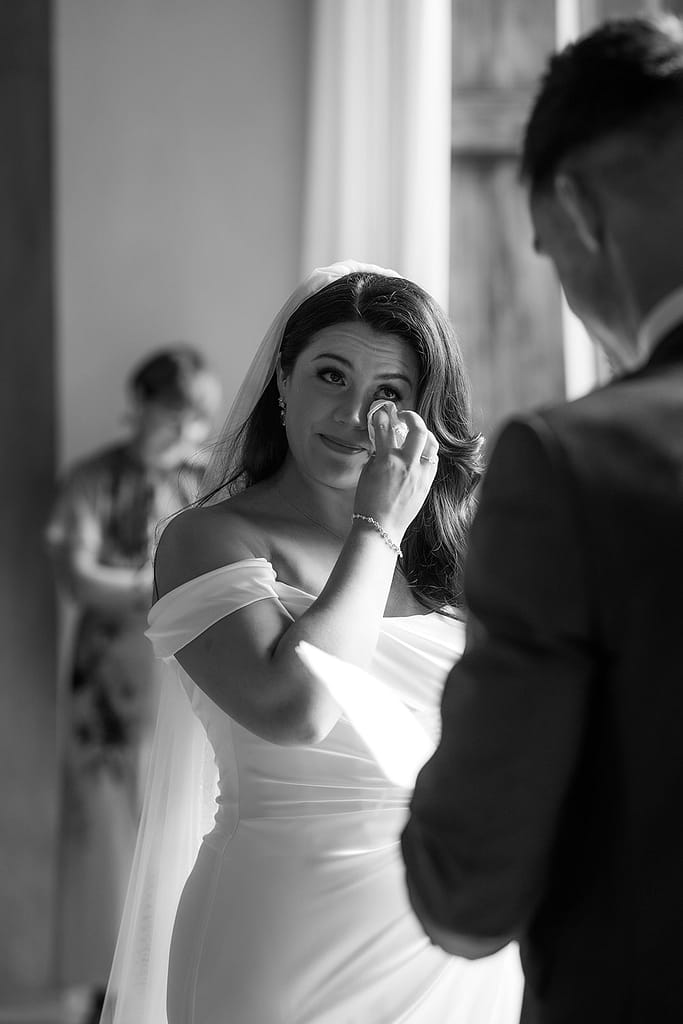 Danielle, whose London ceremony look was already a standout, embraced a relaxed yet refined style once again. Her Suzanne Neville gown felt timeless in silhouette but modern in detail. Her signature flawless makeup and softly styled hair completed a bridal look that was both editorial and entirely “her.”